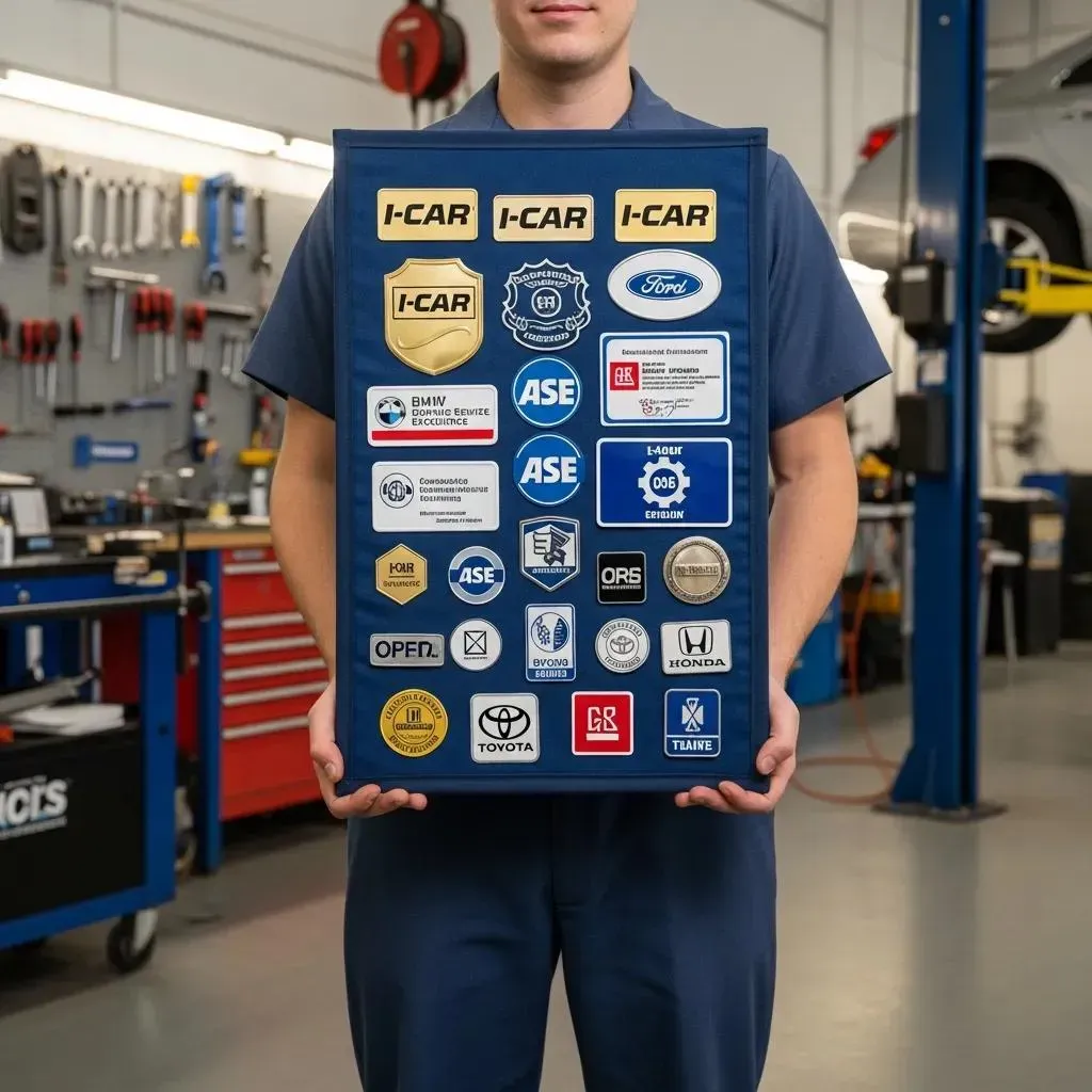 | I-CAR (collision training) | Specialized collision repair education | Shows technicians trained in collision procedures and repair sequencing |